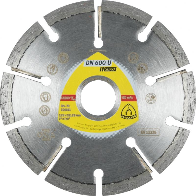Klingspor DN 600 U Diamanttrennscheiben, 115 x 10 x 22,23 mm 9 Segmente 32 x 10 x 7 mm, Standardverzahnung / VPE: 1 Stück