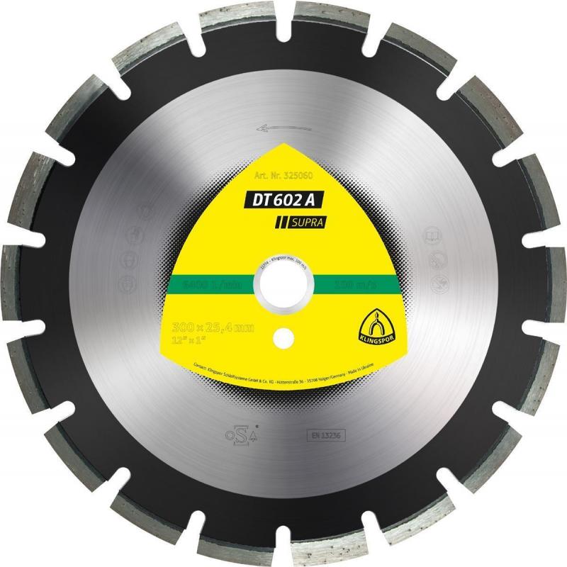 Die lasergeschweißte DT 602 A Supra mit Schutzsegmenten ist ideal für das schnelle Schneiden von Asphalt. Die Profi-Scheibe bietet ein besonders gutes Preis-Leistungsverhältnis und beste Klingspor Markenqualität für den täglichen Einsatz.