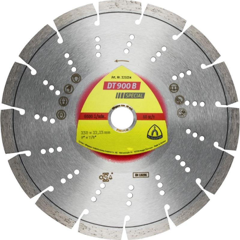 Die lasergeschweißte DT 900 B Special ist ideal für das schnelle und saubere Schneiden von Beton und armiertem Beton. Die aggressive Hochleistungs-Scheibe bietet besonders lange Standzeiten und erstklassige Klingspor Markenqualität.