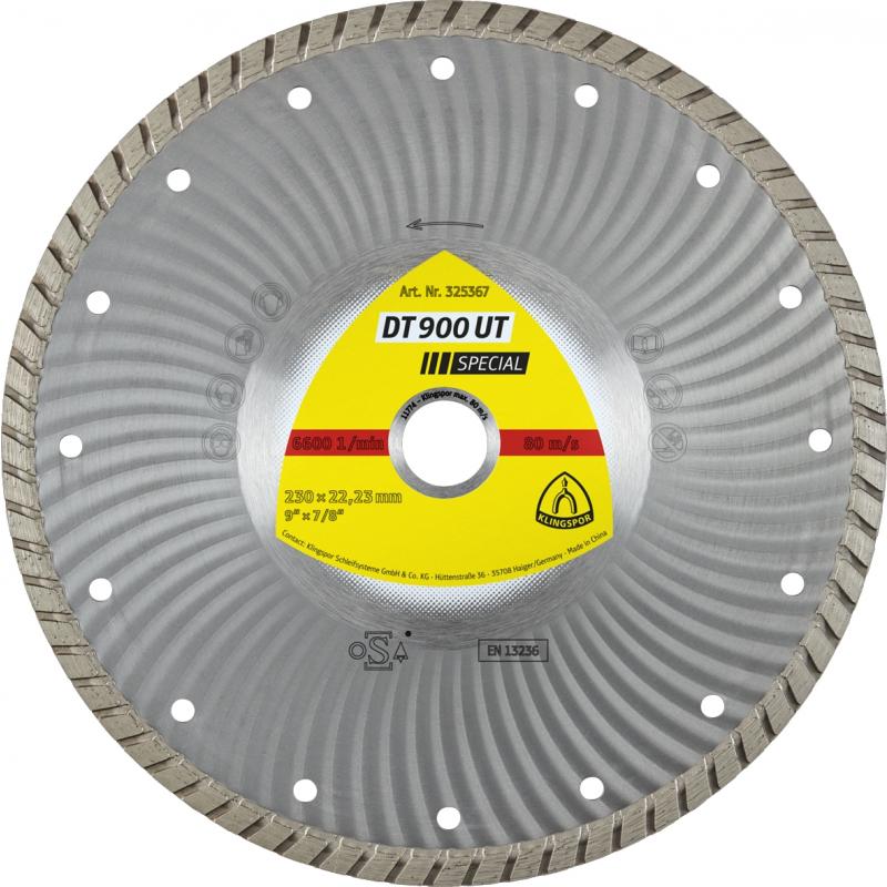 Die Universalscheibe DT 900 UT Special ist ideal für Dachziegel, Beton und Baumaterialien. Die aggressive Hochleistungs-Scheibe arbeitet sauber und zuverlässig auch unter harten Einsatzbedingungen und bietet erstklassige Klingspor Markenqualiät.