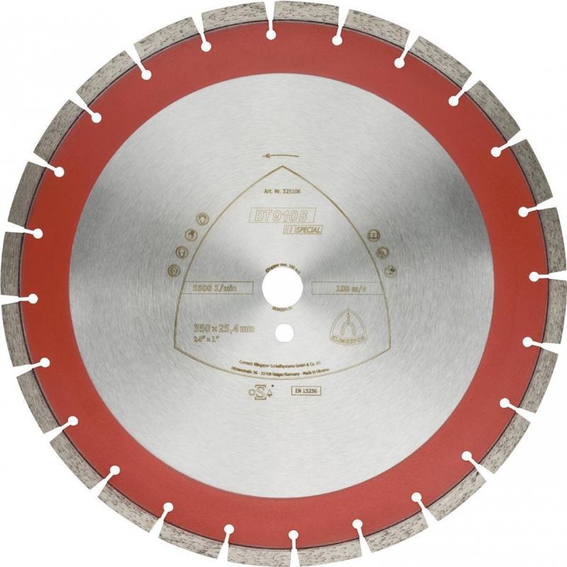 Die lasergeschweißte DT 910 B Special mit enger Verzahnung ist ideal für das Schneiden von stärker armiertem Beton. Die aggressive Hochleistungs-Scheibe bietet besonders lange Standzeiten im harten Dauereinsatz und erstklassige Klingspor Markenqualität.