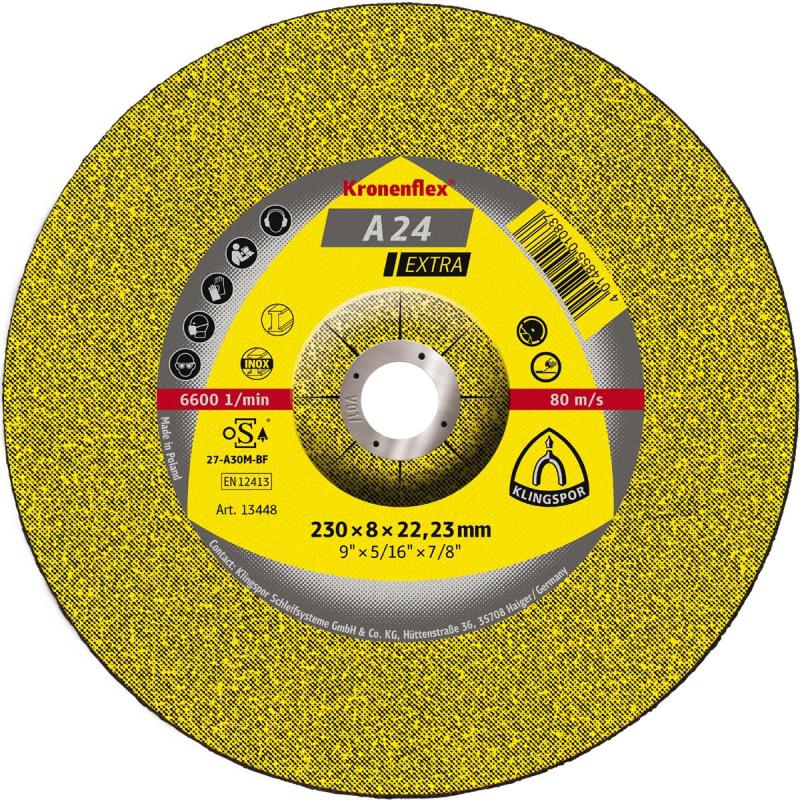Klingspor A 24 EX Schruppscheiben, 230 x 8 x 22,23 mm gekröpft / VPE: 10 Stück
