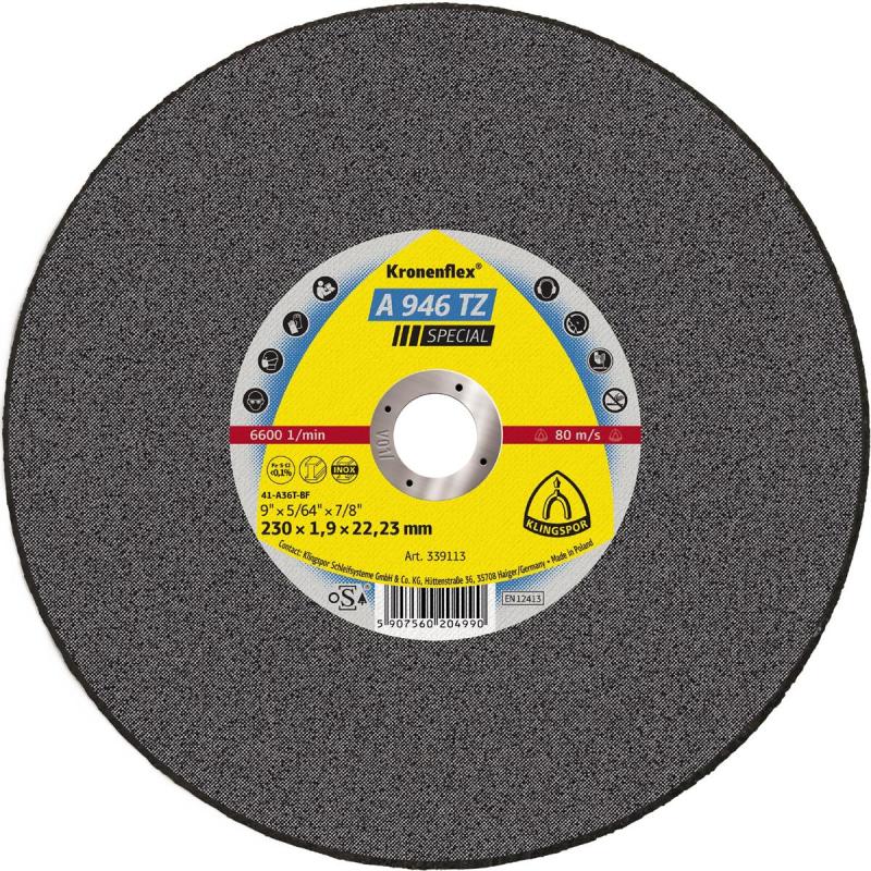 Die Kronenflex® Trennscheibe A 946 TZ Special ist ideal für das schnelle Trennen von Metallen aller Art. Die eisen-, schwefel- und chlorfreie Hochleistungs-Scheibe bietet extra lange Standzeiten und wird in der schützenden Kronenflex® Box geliefert.